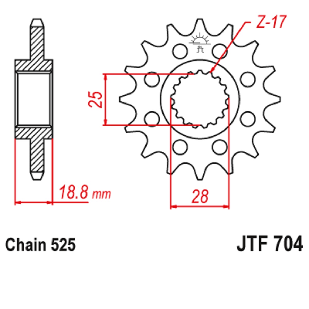 JT Звезда ведущая на мотоцикл JTF704.16RB